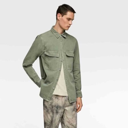 Select options This product has multiple variants. The options may be chosen on the product page Quick Viewد.م. 39,00Relaxed fit overshirt with lapel collar and long cuffed sleeves. Washed effect. Front patch pockets with flaps. Side vents at hem. Front metal button closure.